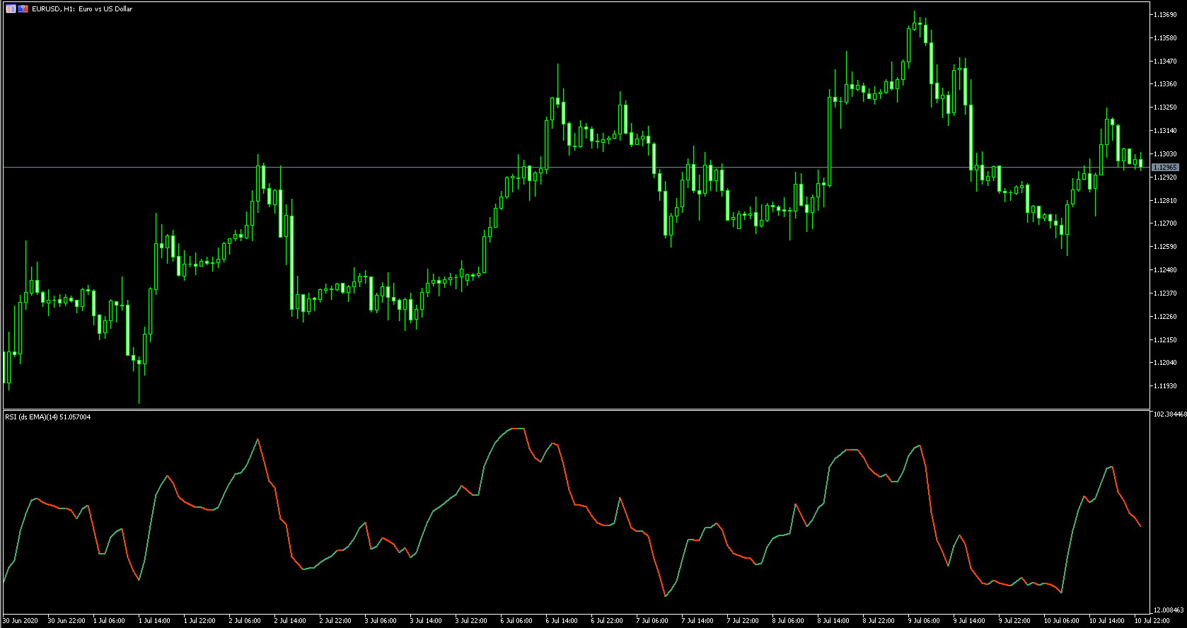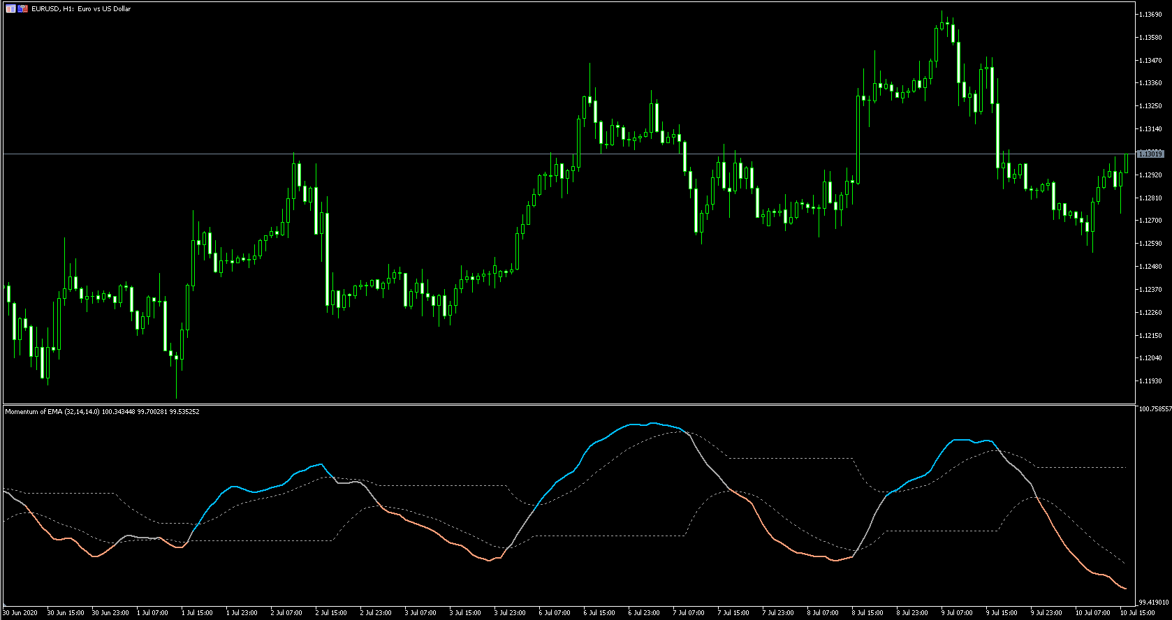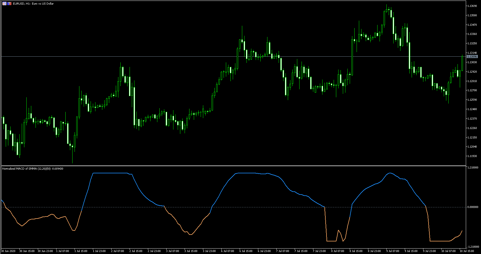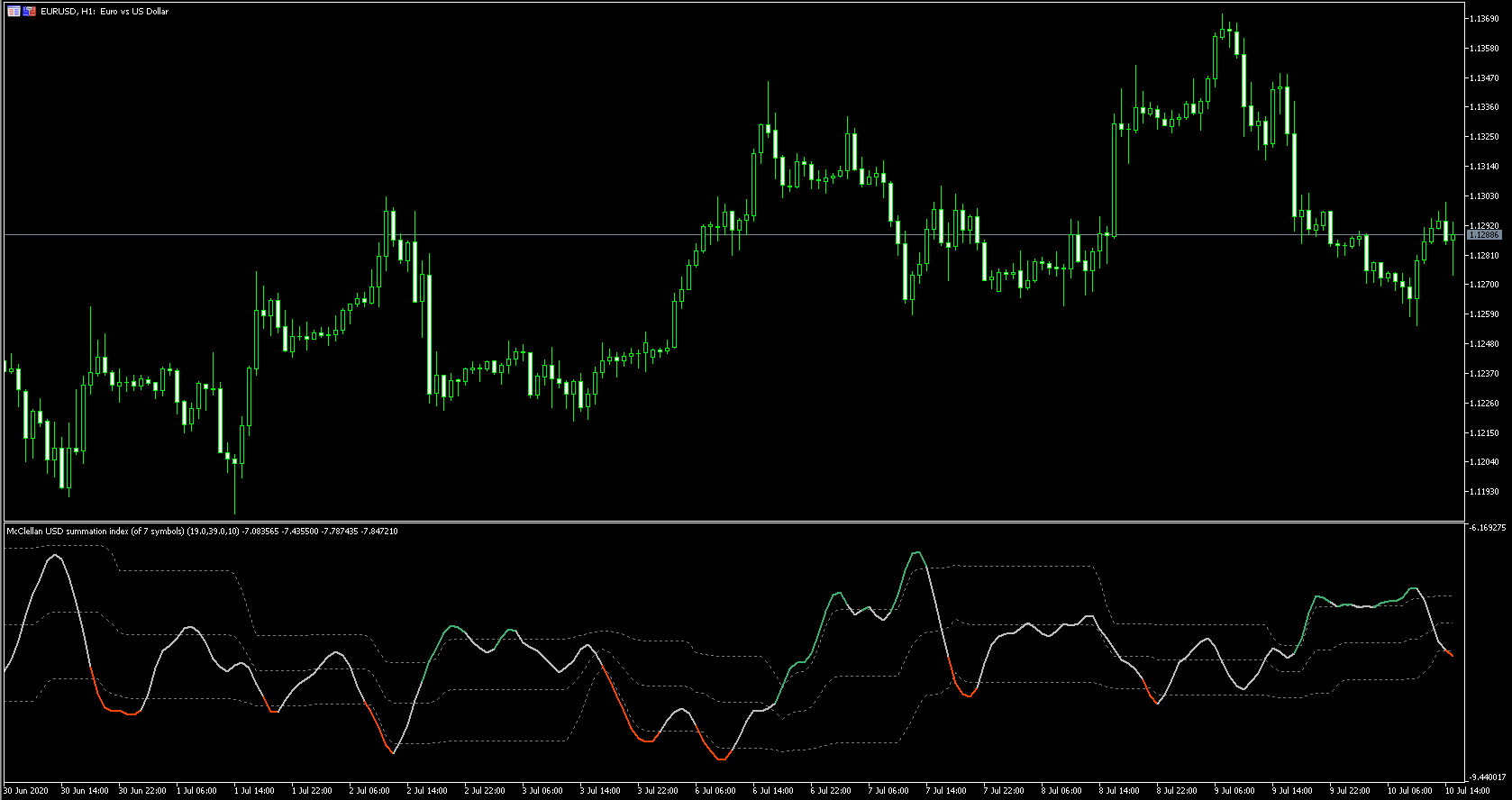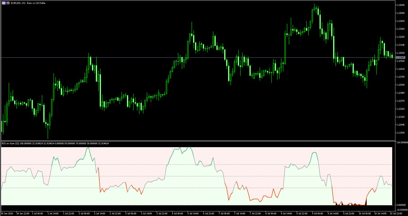FXのフリーのチャートソフト、メタトレーダー5 (MT5)にインディケーターを表示させた画像です。