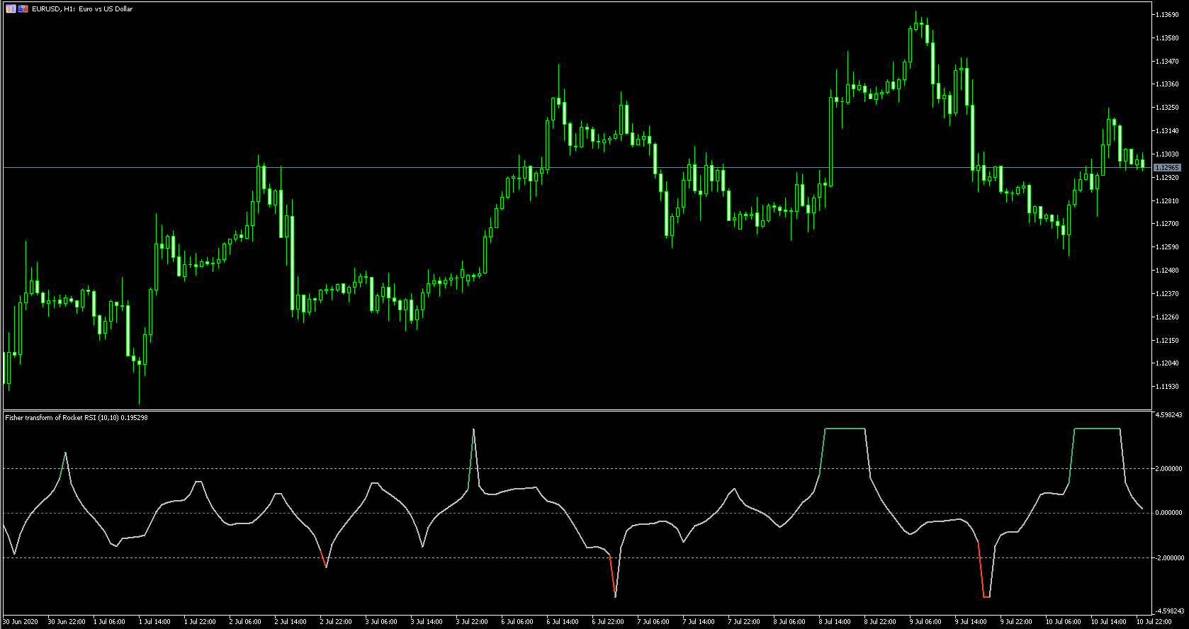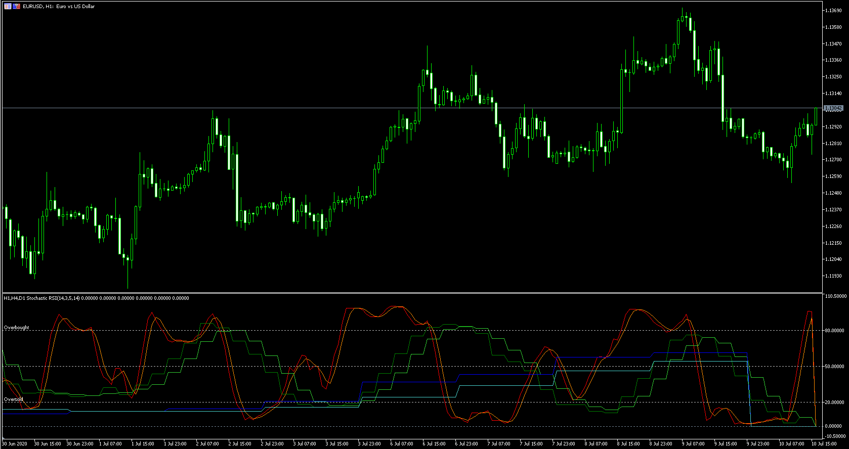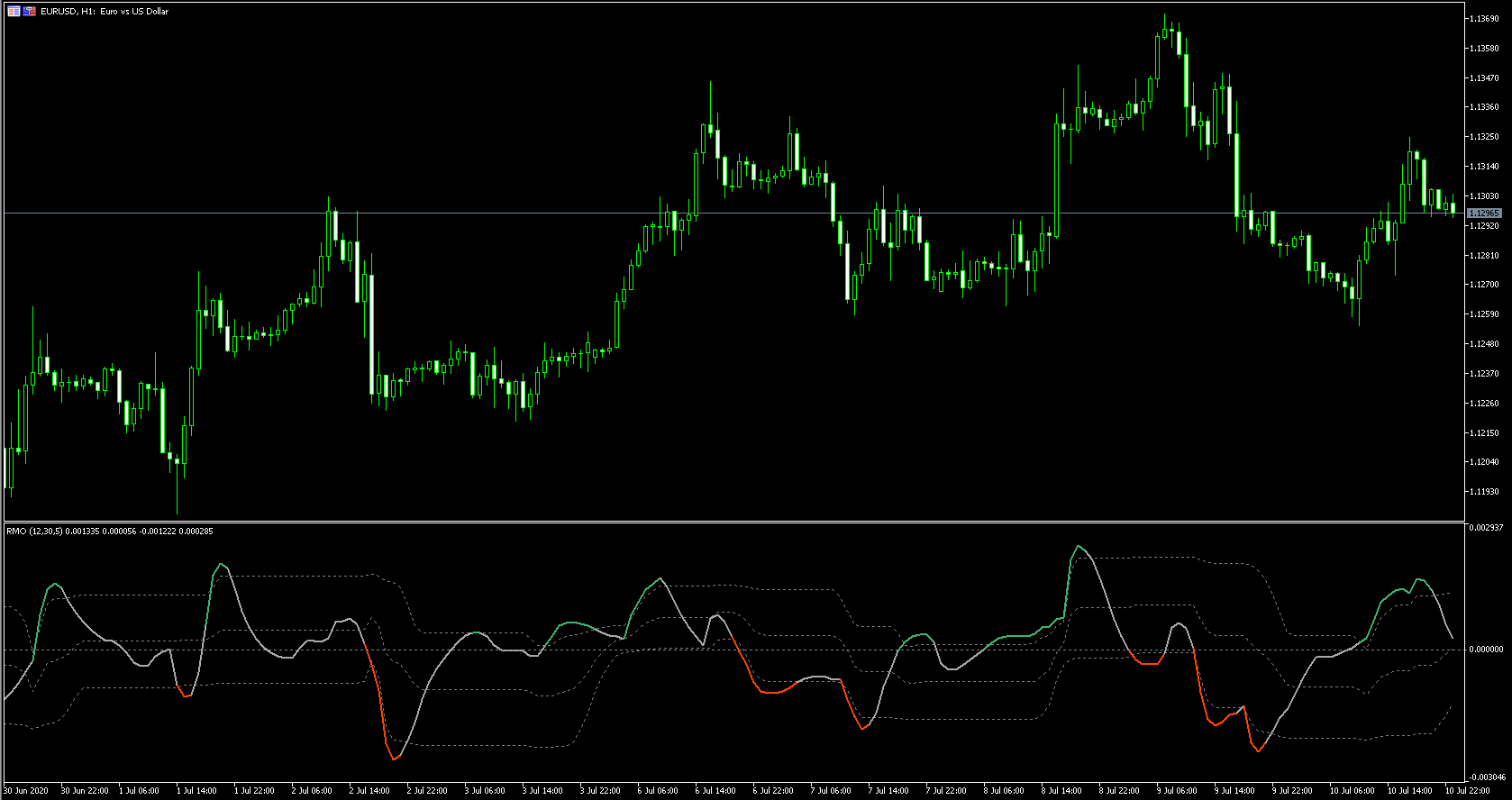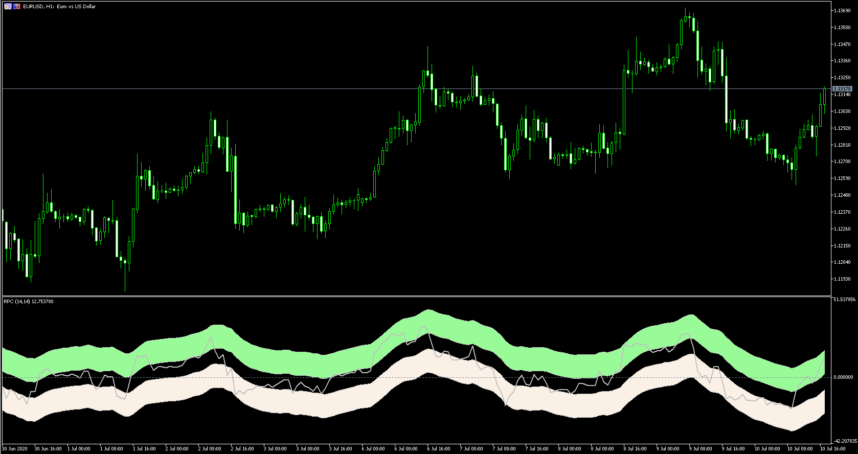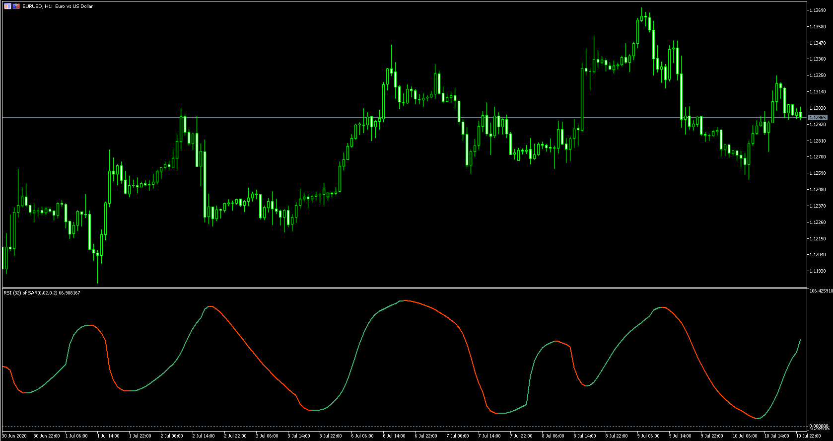 FXのフリーのチャートソフト、メタトレーダー5 (MT5)にインディケーターを表示させた画像です。