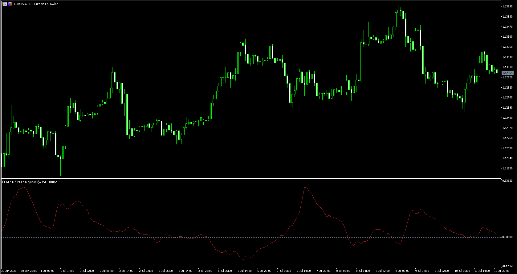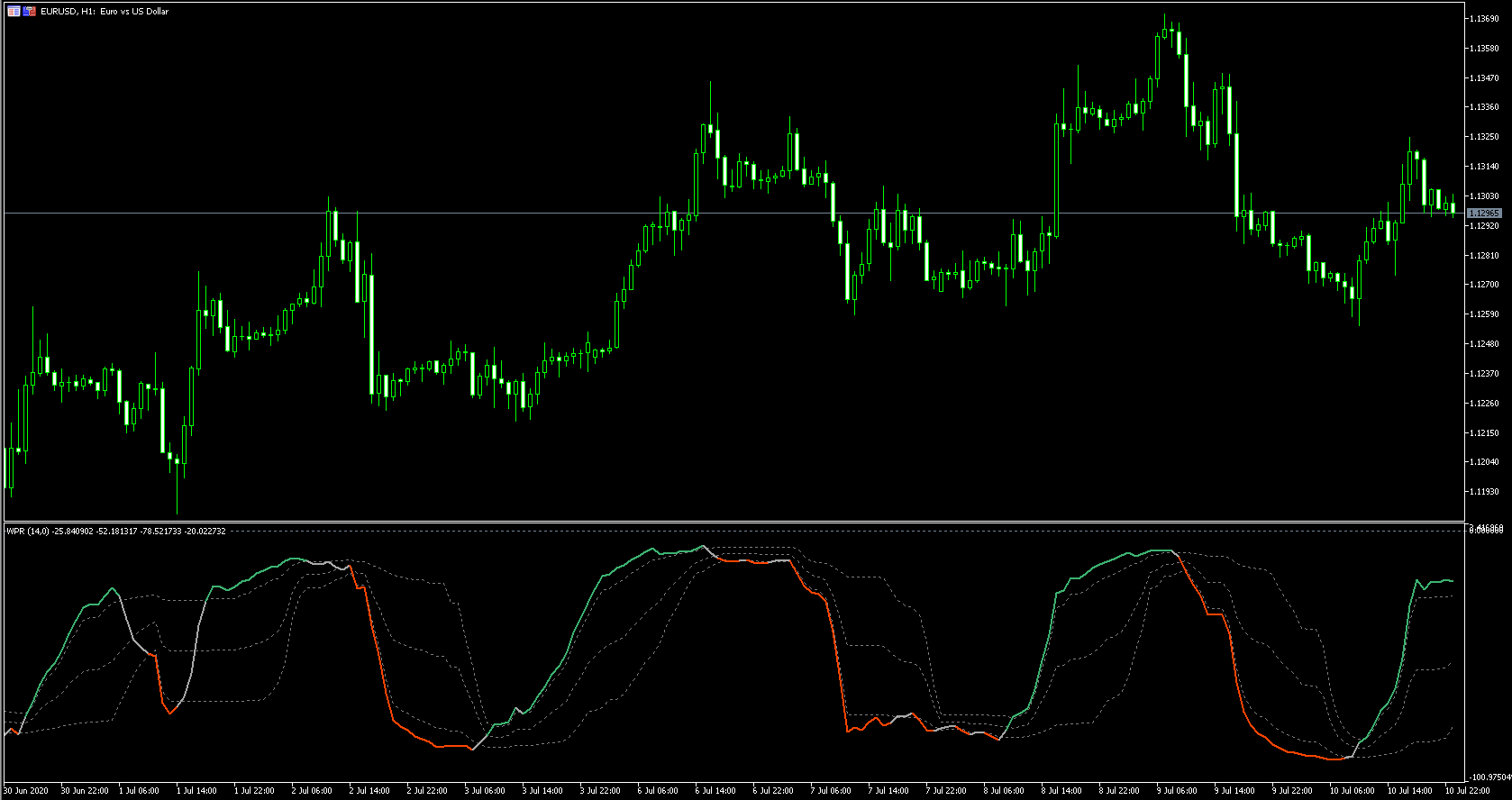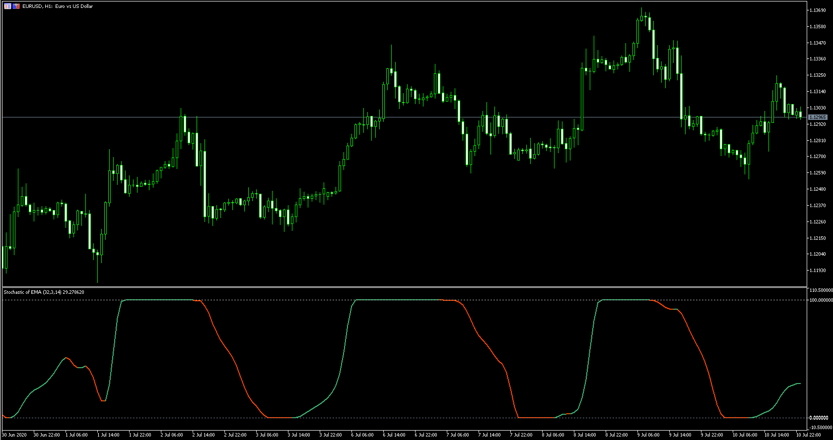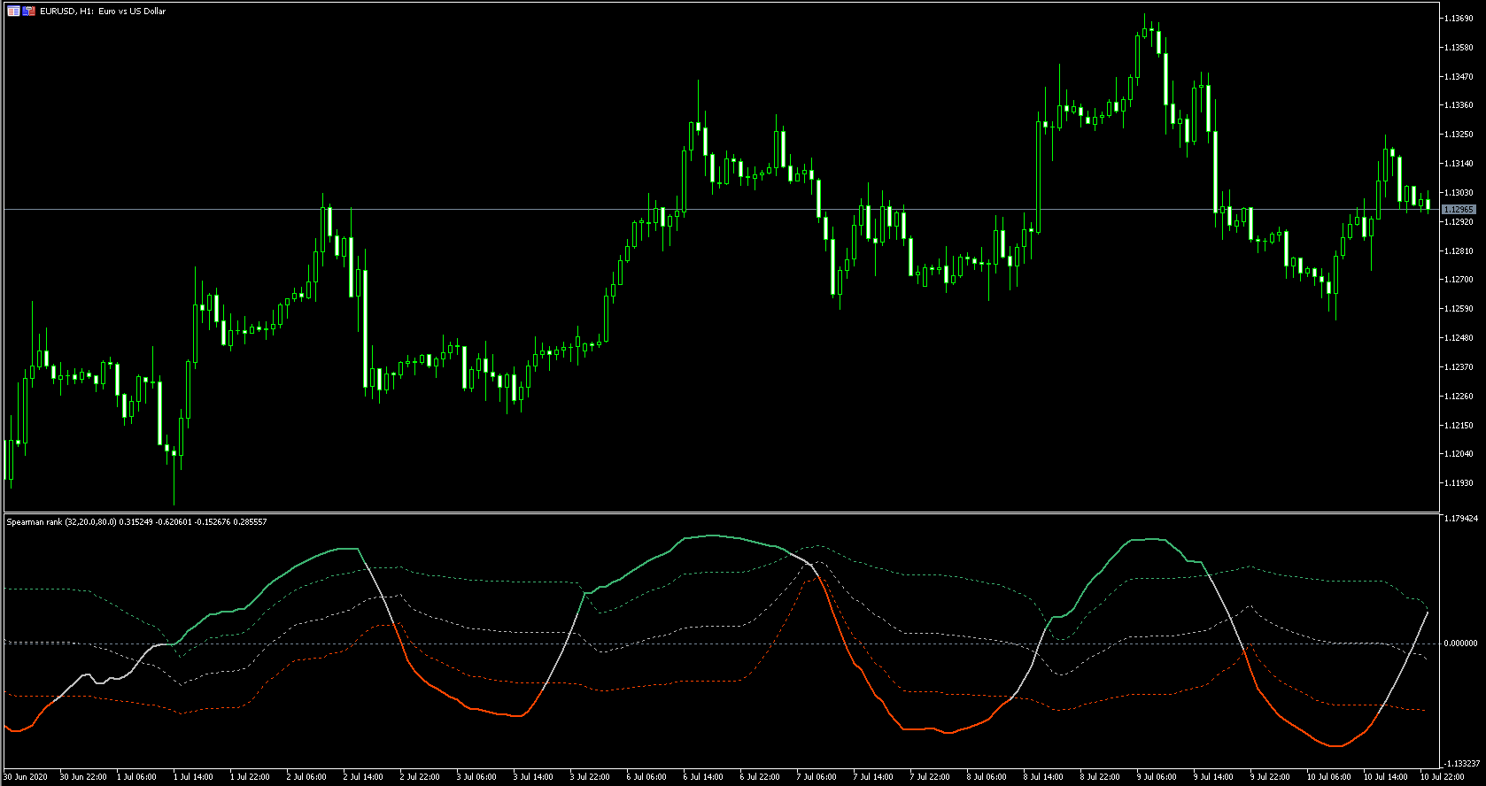 FXのフリーのチャートソフト、メタトレーダー5 (MT5)にインディケーターを表示させた画像です。