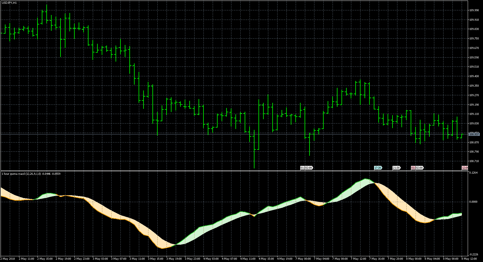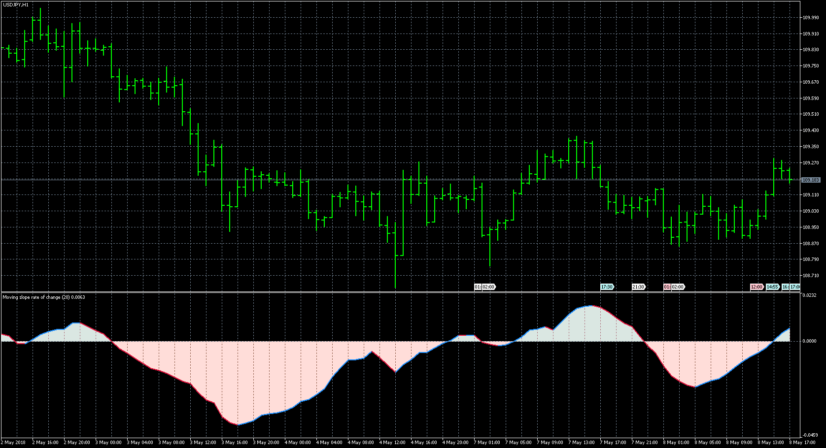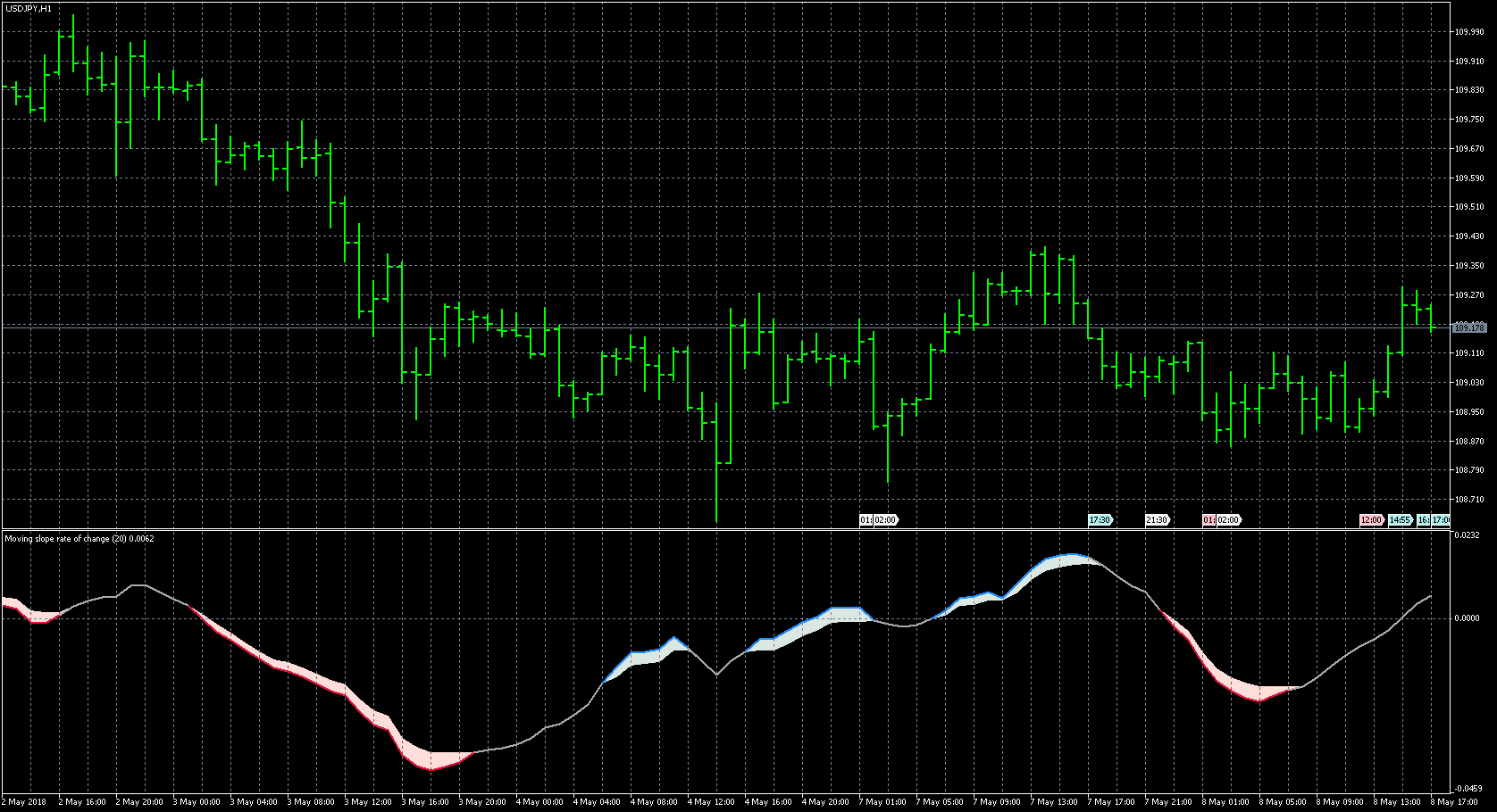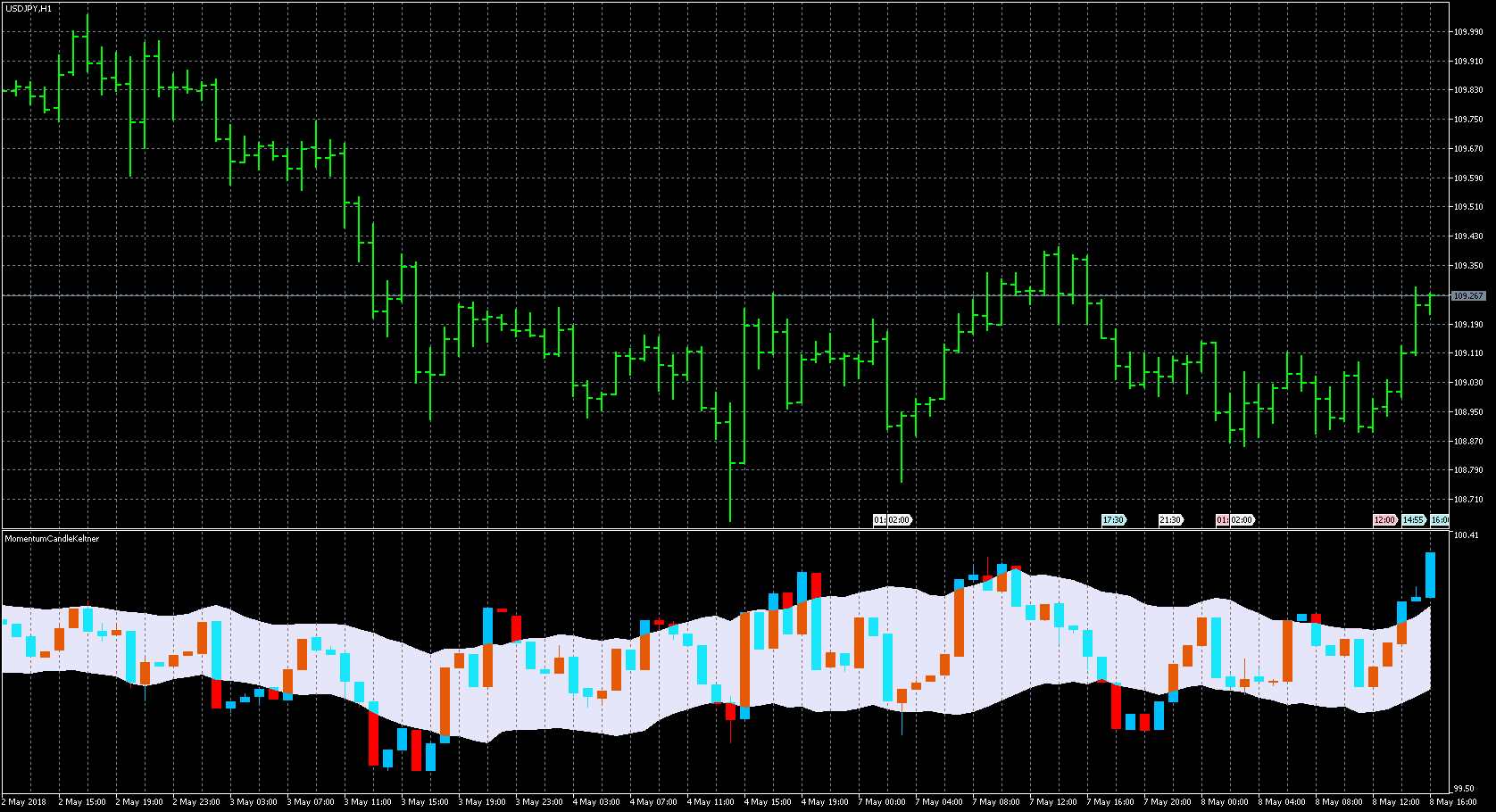 FXのフリーのチャートソフト、メタトレーダー5 (MT5)にインディケーターを表示させた画像です。