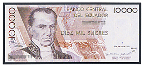 10000スクレ 肖像はビンセンテ・ロカフェルテ