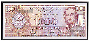 1000グアラニー 肖像はマリスカル・ロペス大統領