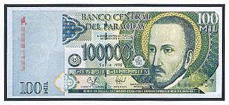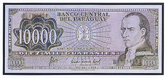 10000グアラニー 肖像はホセ・ロドリゲス・デ・フランシア