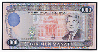 1000マナト 肖像はニアゾフ大統領
