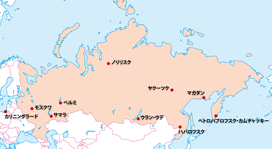 ロシアの主な都市の時刻