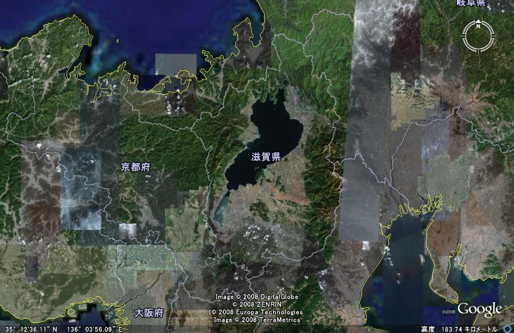 正確に言うと、中央やや北東寄りに日本最大の湖・琵琶湖が広がる。琵琶湖の東南岸沿いに近江盆地が開けていて人口が集中、京都・大阪圏のベッドタウンとなっている。琵琶湖周辺の平地のほかは山に囲まれていて、過疎化が進行している。古くから近江米の山地として稲作が盛んであり、耕地のほとんどは水田である。また、北陸方面と関東・中部方面と近畿を結ぶ交通の要でもあり、農・商業とも盛んな豊かな国であった。観光地は、琵琶湖と彦根城、大津市の神社などである。他に気になるところとして、狸の置物の信楽、南部三重県沿いに忍者の伊賀がある。ちなみに県境を越えた三重県側は伊賀である。