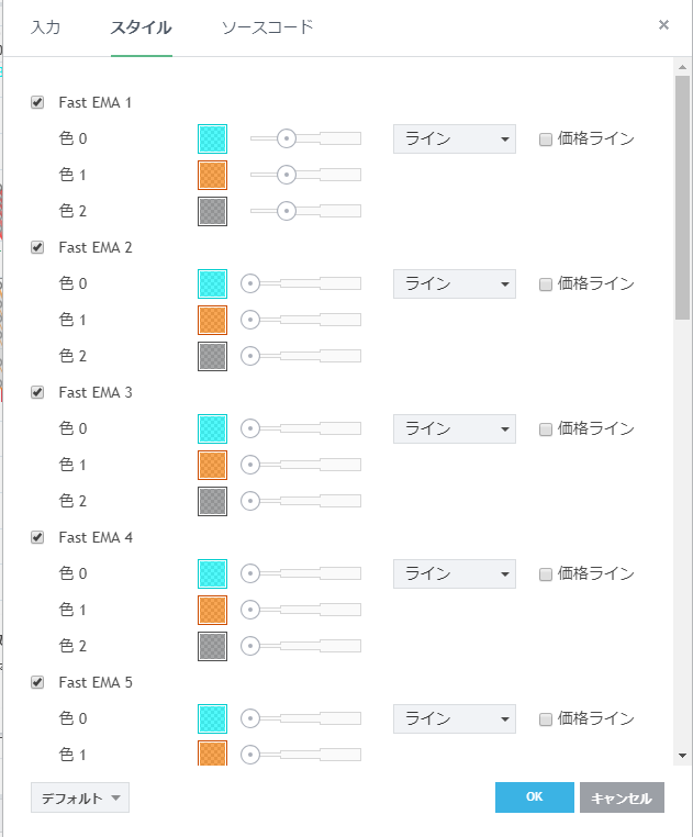 Moving Average Colored EMA/SMA [表示] [入力] [スタイル]