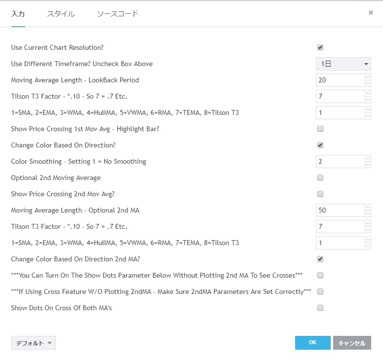Ultimate Moving Average-Multi-TimeFrame-7 MA Types [表示] [入力] [スタイル]
