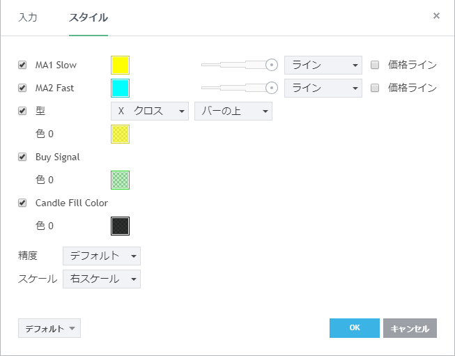 Example of Code for Moving Average Cross - Changing Colors [表示] [入力] [スタイル]
