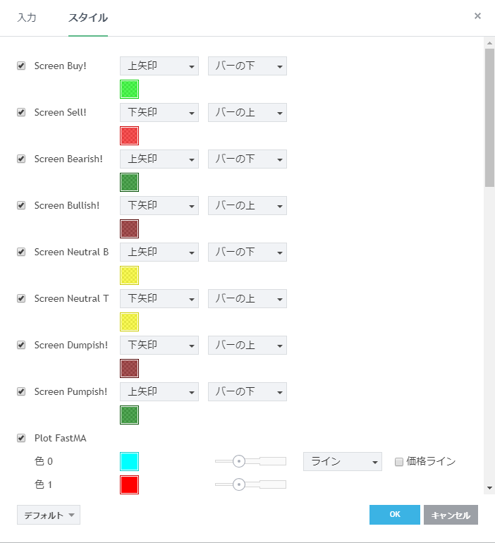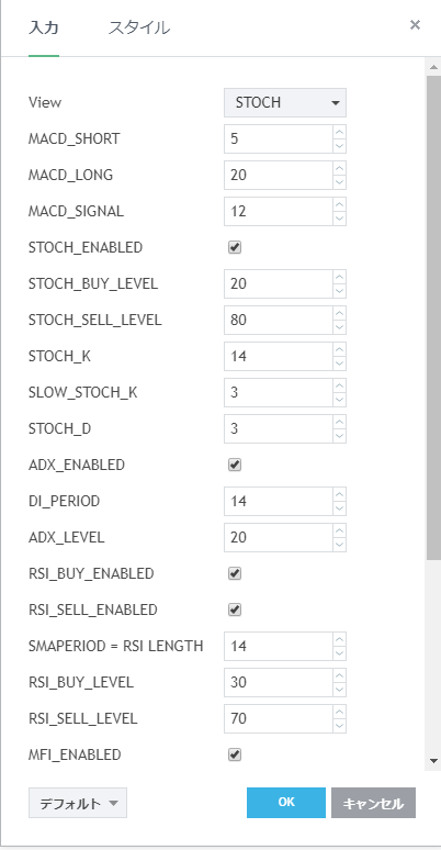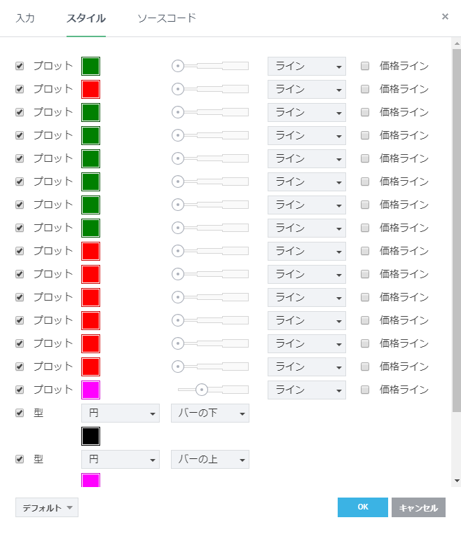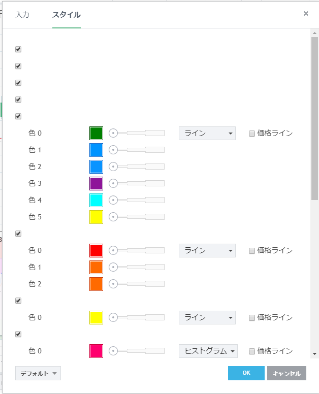 フリーのチャートソフト、TradingView (トレーディングビュー) に表示するインディケーターリストです。