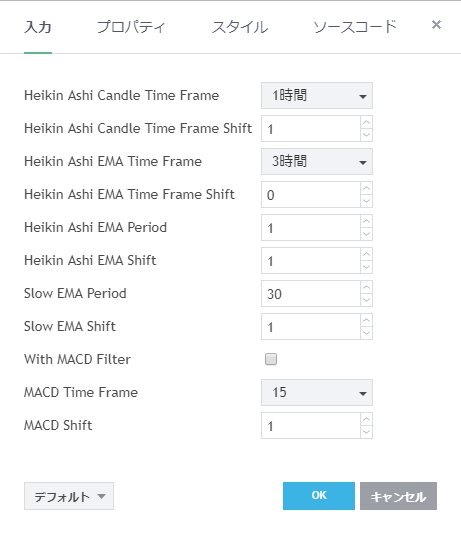 Heikin Ashi Strategy V2 [表示] [入力] [プロパティ] [スタイル]