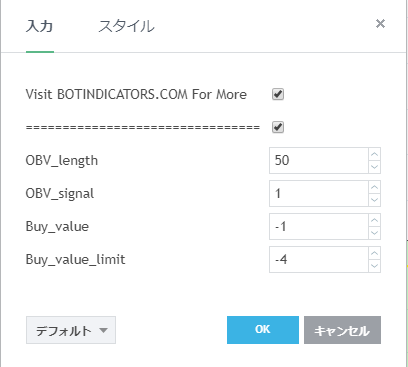OBV for ProfitTrailer by BotIndicators.com [表示] [入力] [スタイル]