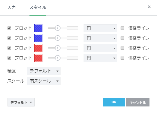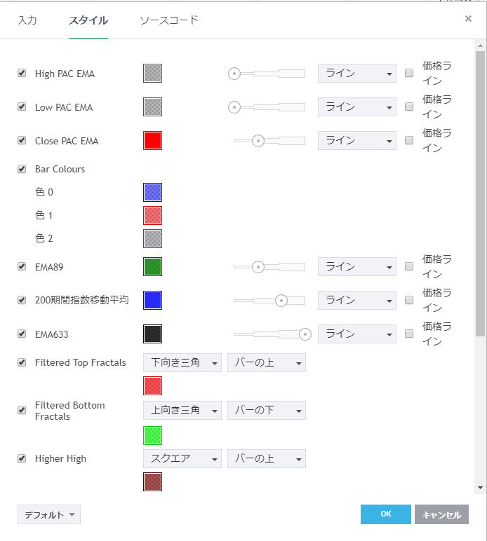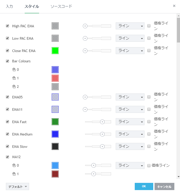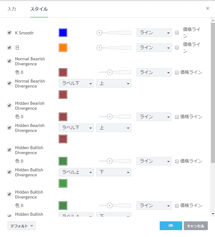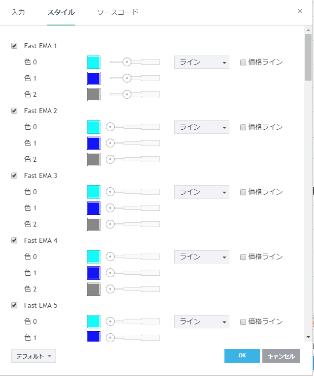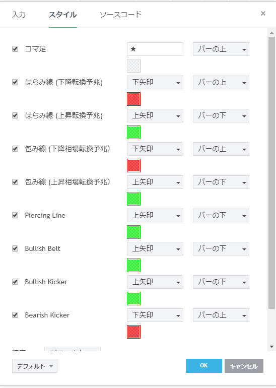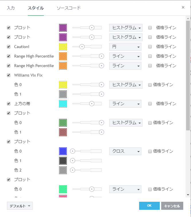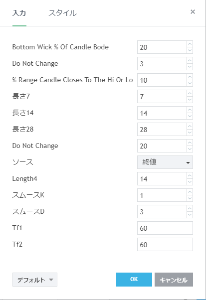 フリーのチャートソフト、TradingView (トレーディングビュー) に表示するインディケーターリストです。