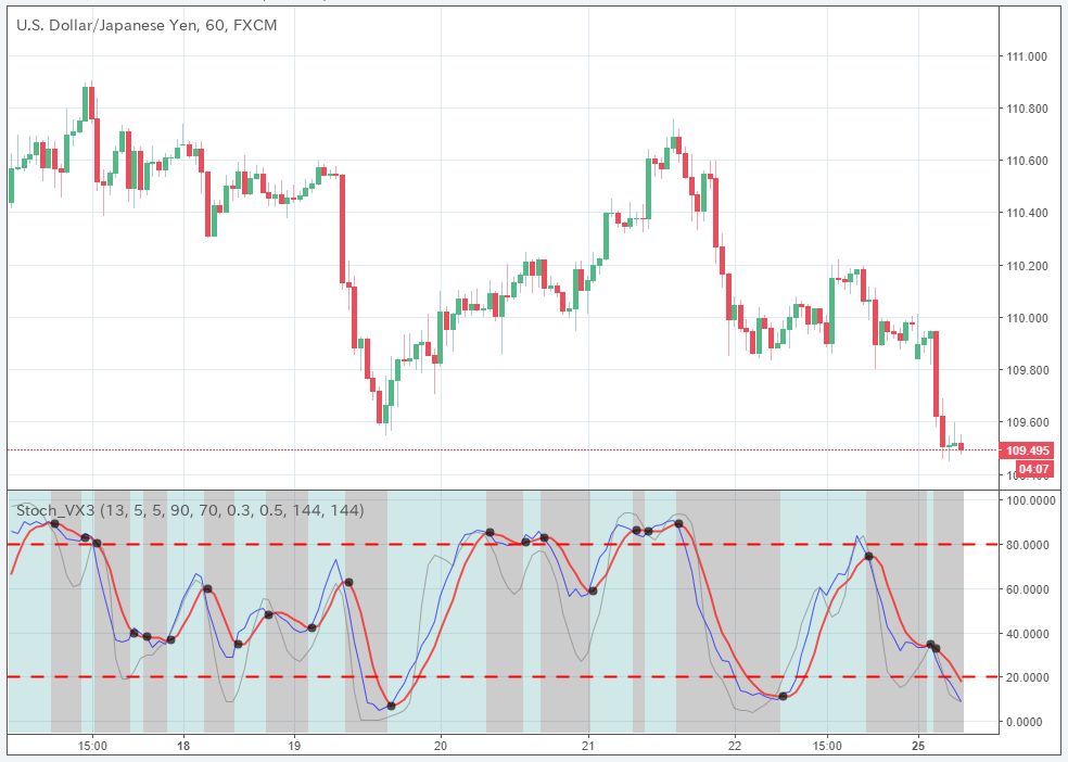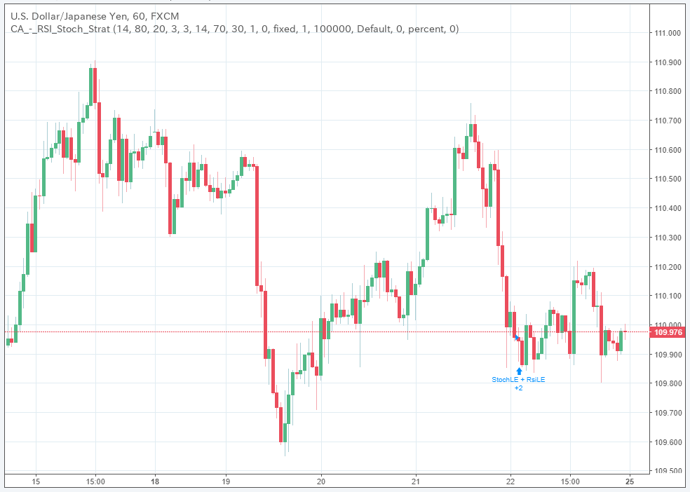 Stochastic + RSI, Double Strategy (by ChartArt) [表示] [入力] [プロパティ] [スタイル]