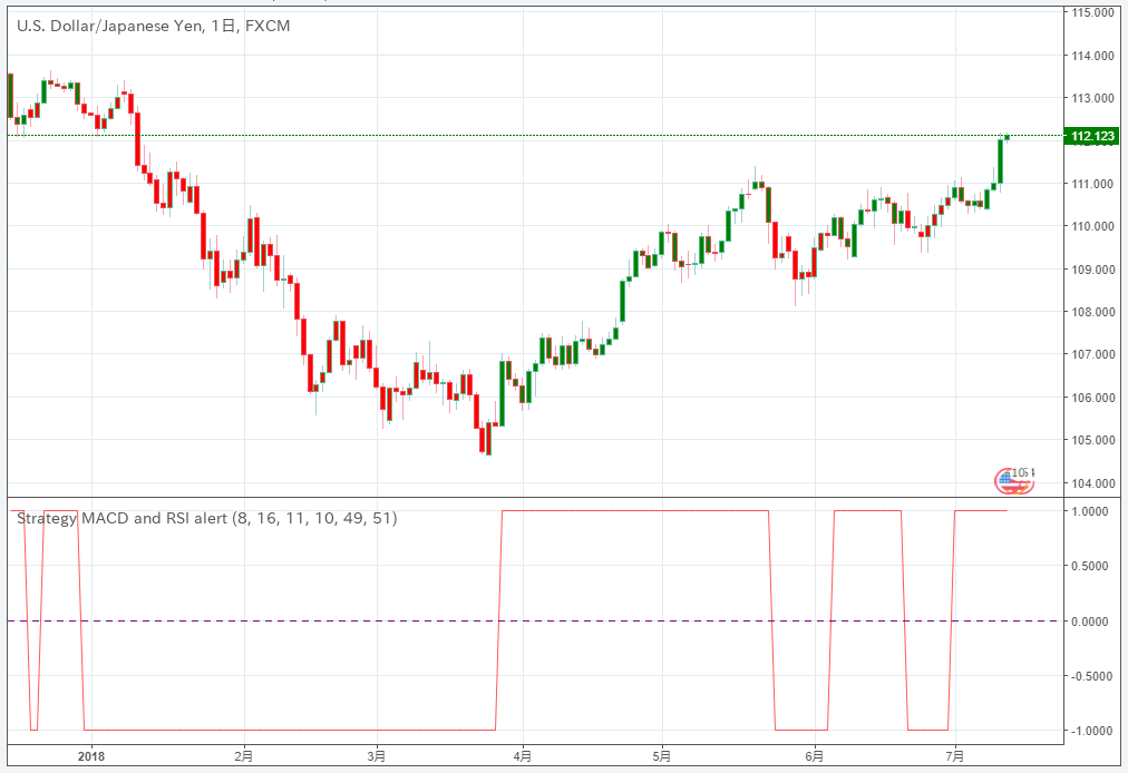 strategy MACD and RSI alert [表示] [入力] [スタイル]