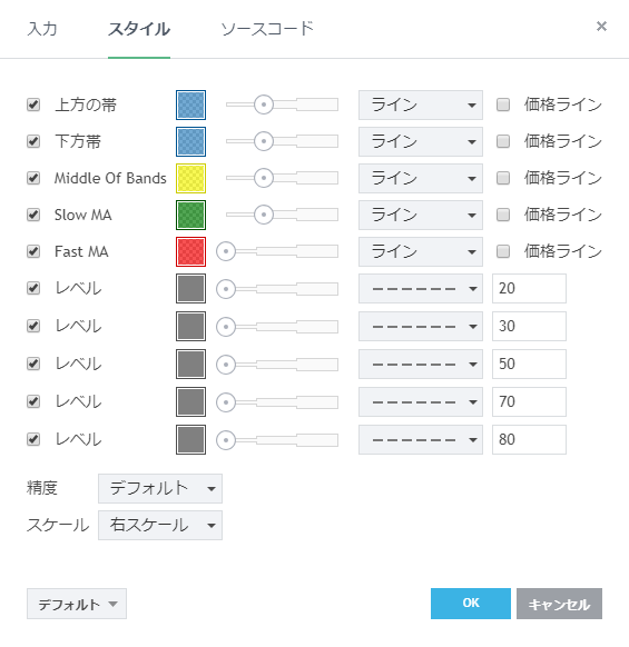 Triple Bollinger Bands [表示] [入力] [スタイル]