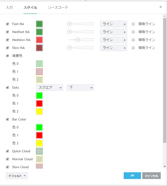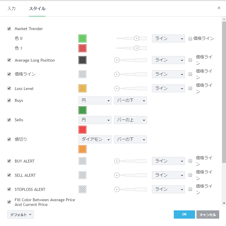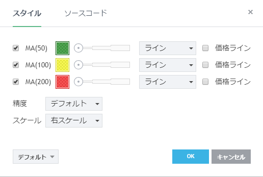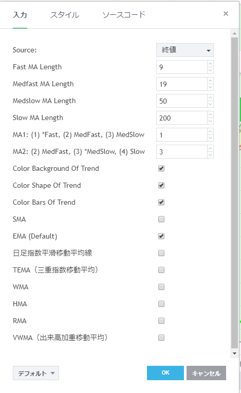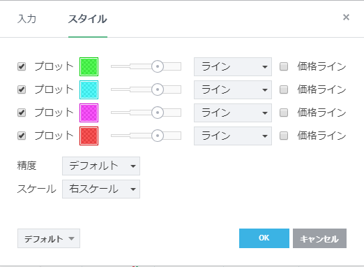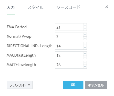 フリーのチャートソフト、TradingView (トレーディングビュー) に表示するインディケーターリストです。