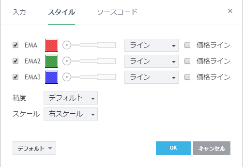 Triple Exponential Moving Averages (3 EMA) [表示] [入力] [スタイル]