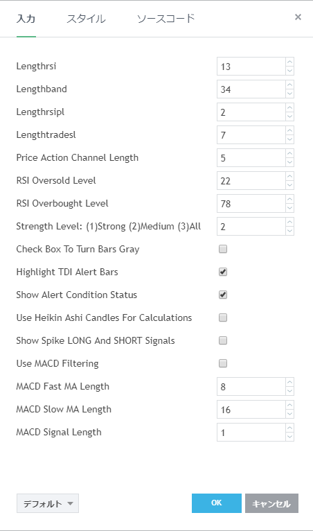 Traders Dynamic Index Indicator Alert v0.1 by JustUncleL [表示] [入力] [スタイル]