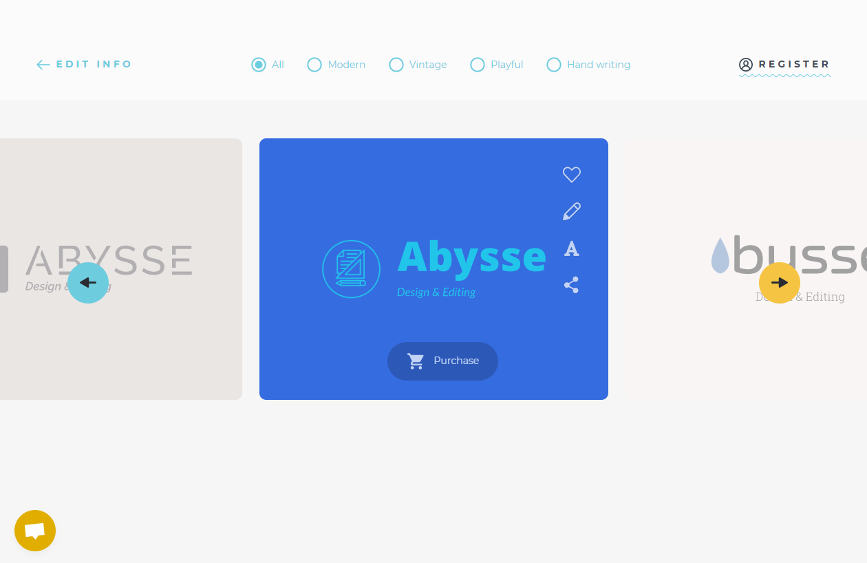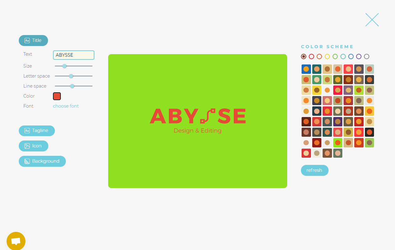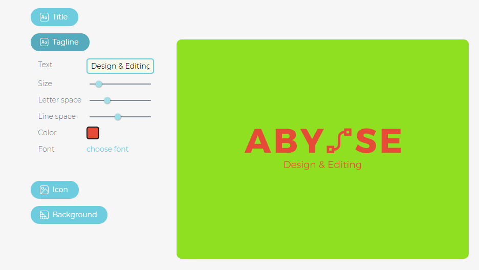 とりあえず、ここではロゴ名に「Abysse」、キャッチフレーズに「Design & Editing」と入力します。