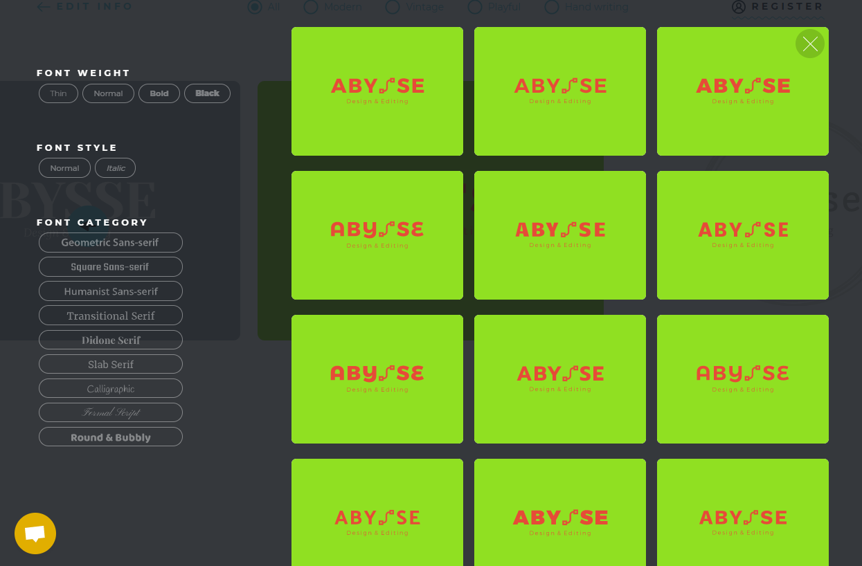 ロゴのさまざまなフォント案が表示されます。