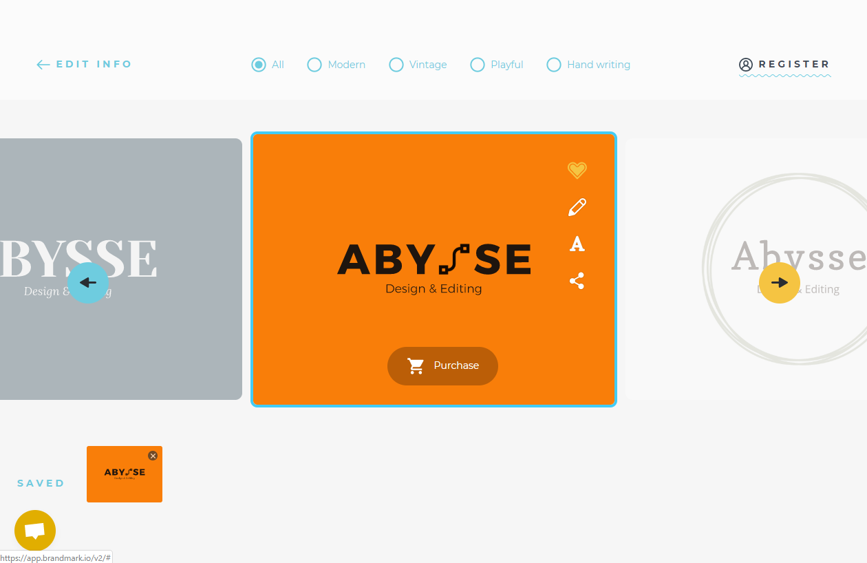 数秒後、さまざまなロゴ案が表示されます。