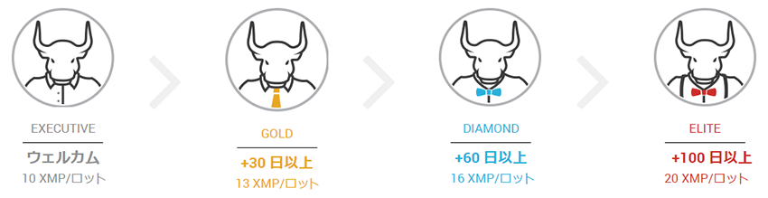 最初は1ロットの取り引きごとに10XMPですが、ステータスが上がっていくと、最高で1ロットあたり20XMPがもらえるようになります。