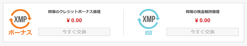 貯めたXMPはクレジットボーナス(取引ボーナス)として取引口座に入れるか、現金として引き出すことができます。